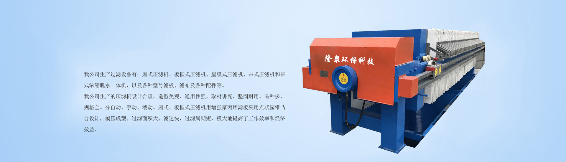 商丘隆泉環(huán)??萍加邢薰臼且患揖哂凶灾髟O(shè)計(jì)開(kāi)發(fā)和生產(chǎn)制造能力并吸收 了國(guó)內(nèi)外優(yōu)秀同行廠(chǎng)家的產(chǎn)品優(yōu)點(diǎn)、加工廂式、板框式、隔膜式、帶式設(shè)備齊全、技術(shù)工藝先進(jìn)、 實(shí)力雄厚、新產(chǎn)品質(zhì)量?jī)?yōu)良的新型設(shè)備的專(zhuān)業(yè)生產(chǎn)公司。我公司生產(chǎn)的主導(dǎo)產(chǎn)品一一防腐型壓濾機(jī),設(shè)計(jì)合理、造型美觀(guān)、通用性強(qiáng)、取材講究、堅(jiān) 固耐用、品種多,規(guī)格齊全。產(chǎn)品分為:自動(dòng)、手動(dòng)、液動(dòng)、廂式、板框式、機(jī)、電液一體式和 機(jī)、電、液分體式壓濾機(jī),其中壓濾機(jī)濾板采用增強(qiáng)聚丙烯濾板,其過(guò)濾面采用點(diǎn)狀圓錐凸臺(tái)設(shè) 計(jì),模壓成型,過(guò)濾面積大,濾速快,過(guò)濾周期短,極大的提高了工作效率和經(jīng)濟(jì)效益。公司可 根據(jù)用戶(hù)需求,設(shè)計(jì)制造各種特殊性能的壓濾機(jī),配置具有抗腐性的各種聚丙烯托盤(pán)和流槽。為了適就市場(chǎng)需求,公司努力提高產(chǎn)品檔次,積極研究耐高溫、耐高腐蝕、耐高壓···